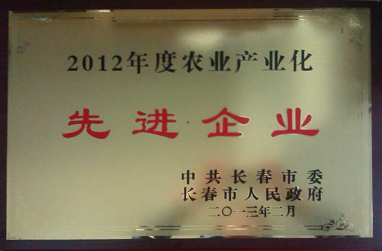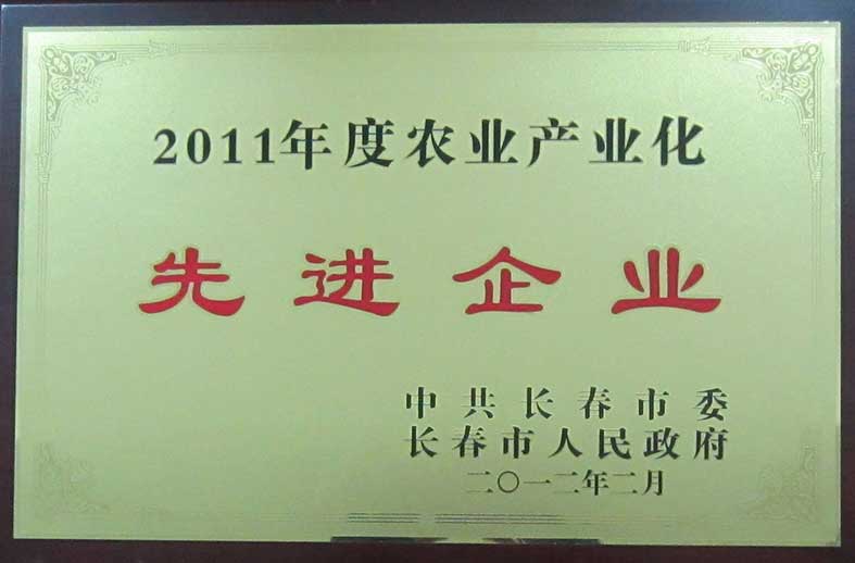 長(cháng)春市委市政府2011年度農業(yè)產(chǎn)業(yè)化先進(jìn)企業(yè)