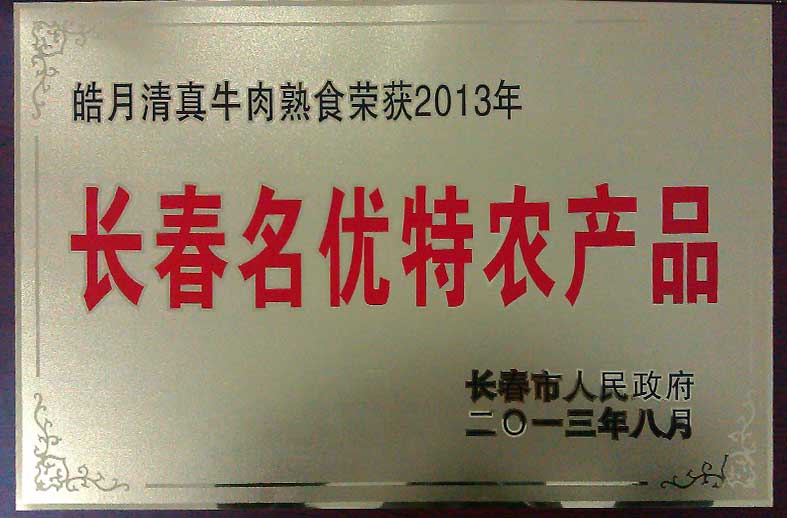皓月清真牛肉熟食榮獲2013年長(cháng)春名優(yōu)特農產(chǎn)品