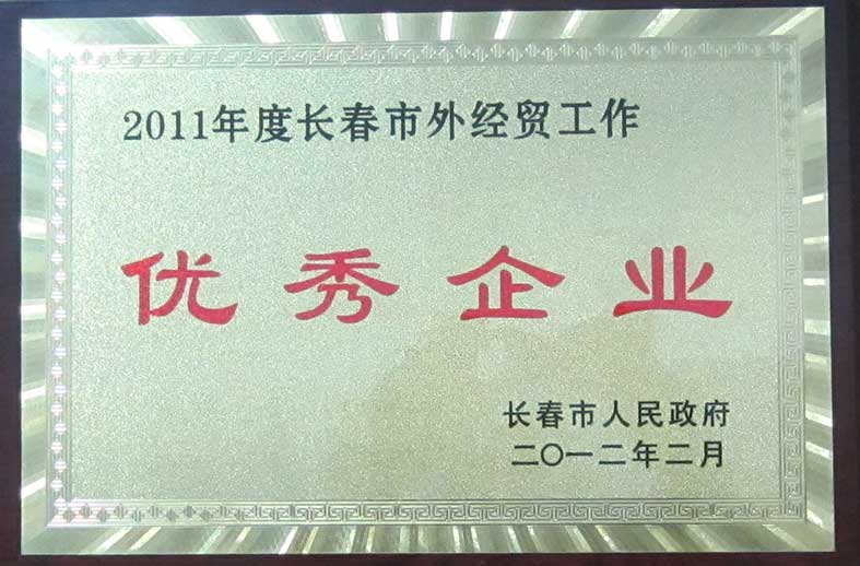 長(cháng)春市政府2011年度長(cháng)春市外經(jīng)貿工作優(yōu)秀企業(yè)