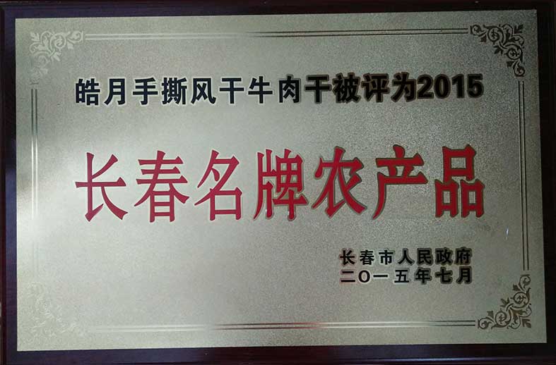 皓月手撕風(fēng)干牛肉干被評為2015長(cháng)春名牌農產(chǎn)品